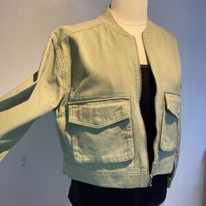 Nicole Miller New York sage green 100% cotton cropped denim zip jacket size M