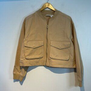 Nicole Miller New York tan/camel 100% cotton cropped denim zip jacket size L NWT