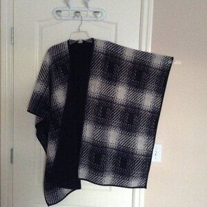 Nicole Miller Original Women's Blanket Fleece Wrap Black Gray Plaid Poncho Warm Cozy