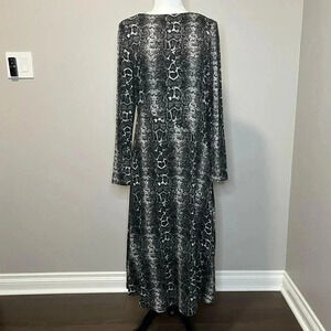 New! Black/ Grey snakeskin pattern. Viscose/ Poly/ Spandex blend. Super soft. Fitted through bodice, slightly flared skirt.