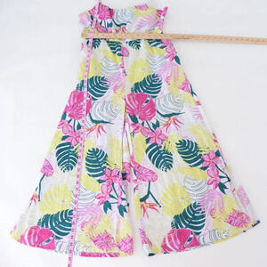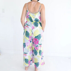 Nicole Miller White Pink Palm Leaf Print 55% Linen Wide Leg Romper M
