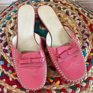 Nicole Y2K contrasting stitching pink leather barbiecore mules