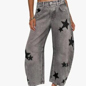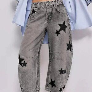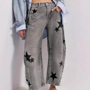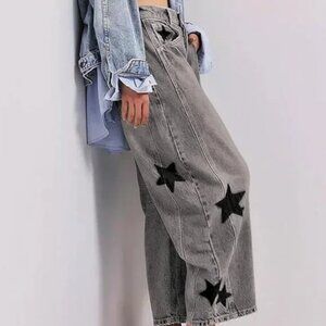 Night Sky Grey/Black Contrasting Stars Baggy Barrel Cut Boyfriend Jeans Pants