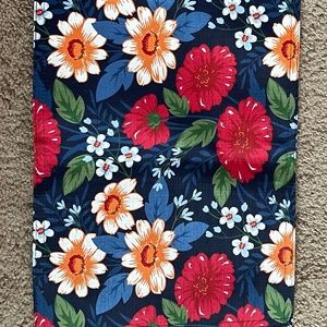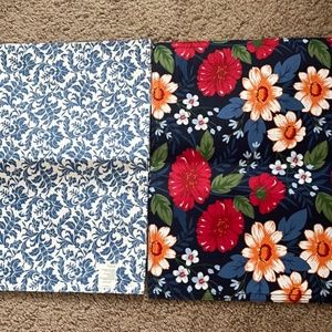 Set of 4 Elegant Thick placemats for Dining table. These colorful placemats are a nice accent piece to your home with so many shades to fit many decors, with a sunburst floral print in shades of red, oranges, blues, and greens on a blue background. The reverse side is your choice, a blue floral on white background