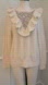 Beautiful super soft ivory sweater. Can be worn dressed up or down. Pit to pit 18” before stretch and length 24”, crème colour. Night cap size two. Which is considered M/L. Made in the USA. V neck with ruffles. Made with Italian cashmere and wool. Has stretch