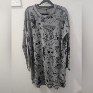 Nightmare nightgown Grey color hi lo design with longer back. Exposed stitching is intentional, no pilling in like new condition. Perfect for any fan of the movie or nightgowns. Says small but dropped shoulder and relaxed fit would fit a range of sizes. Cozy vibes in this liscened Disney nightie. Just have too much Nightmare stuff.