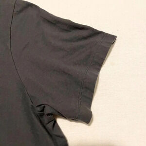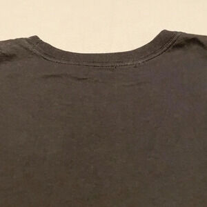 This shirt is pre-owned and in used condition. There is a small hole on the back right by the collar. There is some discoloration to the shirt. Please see all photos for exact item.
