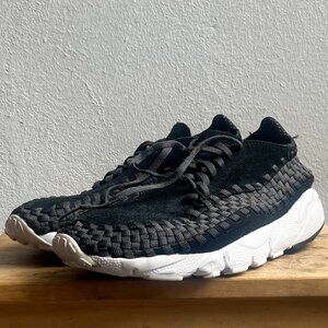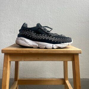 Nike’s unique Air Footscape silhouette returns with instantly recognisable asymmetrical lacing system and idiosyncratic woven detailing spanning the suede uppers in a rainbow colour way.