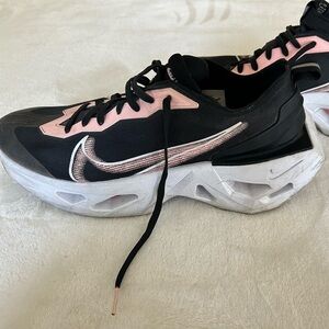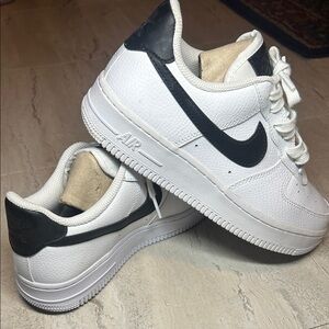 Crisp white Nike shoes with bold black swoosh. Ideal for everyday style. Lightly worn. No box.