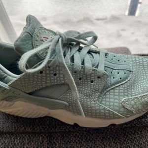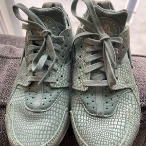 Ladies Nike Air Huarache Run sneaker. snake print design. Teal colour. Lightly worn. No box. Ladies size 6.5 US.