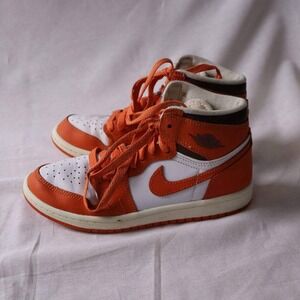 Nike Air Jordan 1 Mid GS Youth Size 1.5Y Orange White Basketball Sneakers