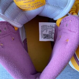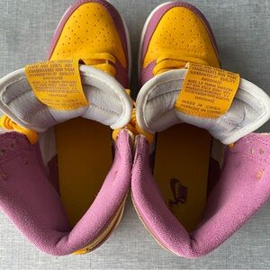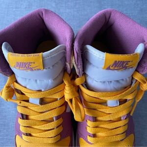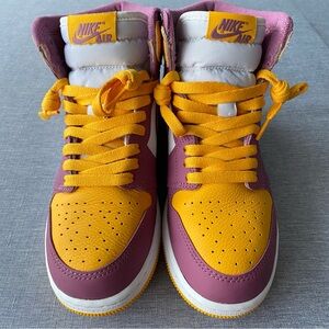 The Air Jordan 1 High OG “Brotherhood” honours Michael Jordan’s fraternity, Omega Psi Phi - that he joined during his days at the University of North Carolina. This sneaker is dressed in a university gold, light Bordeaux, and white colour scheme. It has white leather side panels, nylon tongues, and midsole paired with a gold tone and purple remembering the colours of the fraternity. Underneath, a two-toned rubber outsole adds comfort to the design.