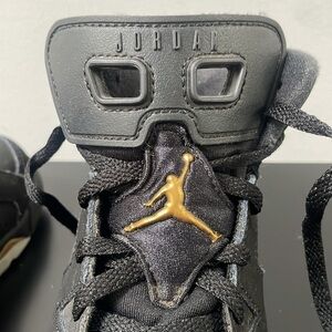 The Nike Air Jordan 6 Retro Black Metallic Gold PS is a sleek and stylish sneaker that combines classic design with modern materials. The upper is made of black leather with metallic gold accents, giving it a bold and eye-catching look. The shoe features a comfortable and supportive fit, with a cushioned midsole and durable rubber outsole.