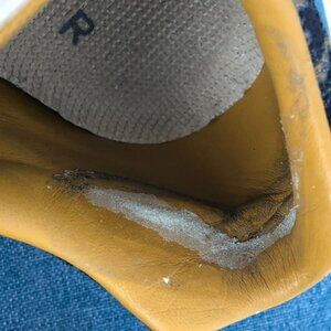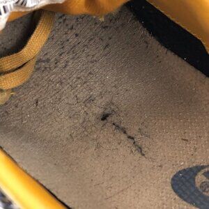 Good, pre-owned condition. Some normal wear and tear, particularly on the inner sole, and some deterioration on the laces, but no major rips, scratches, holes, or stains.