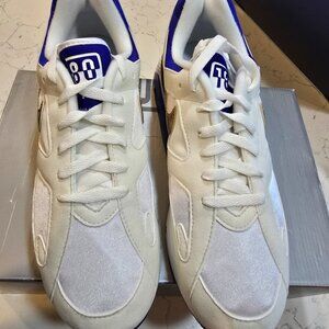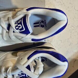 Step into a new era of comfort and style with the Nike Air Max 180 Concord Summit White Metallic Gold, a sneaker that's as versatile as it is visually striking. The size 10 men's shoes feature a sleek design, with a white and gold colorway that offers a fresh take on a classic look. Crafted for a variety of occasions, from athletic activities to casual outings, these sneakers are designed to keep your feet supported and looking sharp. The Air Max 180s boast a host of features including arch support, a cushioned insole, and a durable rubber outsole for slip r
