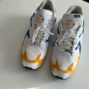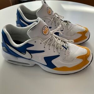 Check out these Nike Air Max Light 2 sneakers in white, blue and yellow! These are a size 13 and have not been worn outdoors. They have been worn for about an hour indoors and just don’t fit me right.