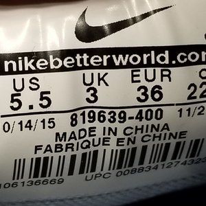 Dark blue Nike Logo Swoosh on either side of the shoe.