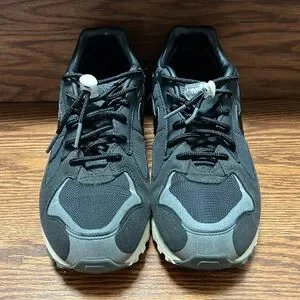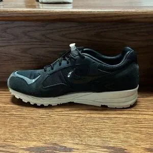 Originally released in 1992, the Nike Air Skylon 2 returned in 2018 with an updated design by Fear of God's Jerry Lorenzo. The Fear Of God x Air Skylon 2 'Black' features a black mesh-based upper with matching black leather and patent leather details. This Skylon 2 Low has mesh padding on the tongue for breathability, a toggle lacing system for personalized fit, and Fear of God branding on the heel side and insole. Creasing on top of shoes (see photos) but in otherwise very good condition.