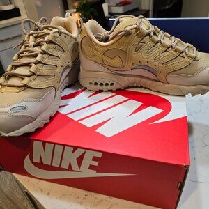 Hit the trails with confidence in the Nike Air Terra Humara SP Sesame Saturn Gold. These men's athletic sneakers are designed for durability and performance, featuring a synthetic upper that stands up to the elements while providing a comfortable fit. The brown hue gives them a classic, versatile look, perfect for outdoor enthusiasts and casual wearers alike. With a size 10 US (9 UK, 44 EU), these shoes are tailored for a medium-width fit, ensuring a comfortable experience with every step. The unique Style Code FQ9084-201 reflects their exclusive design, making them a sta