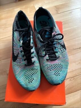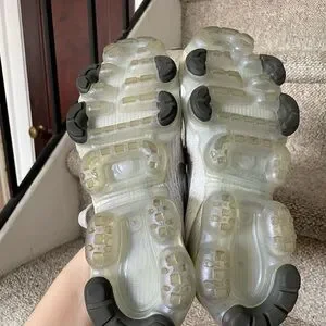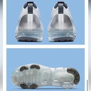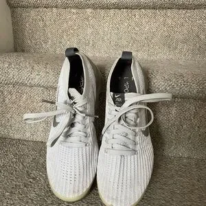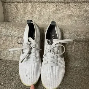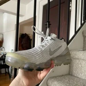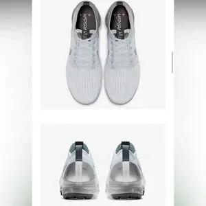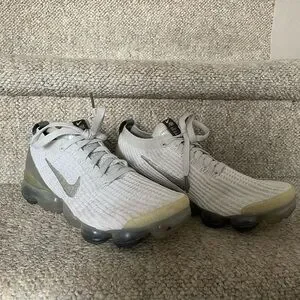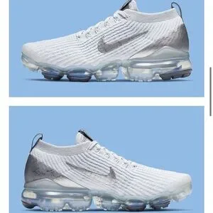 Stylish Nike Vapormax Flyknit 3.0. These Women's sneakers are grey/silver with that cool iridescent Vapormax sole. Has a comfy Flyknit upper. Great for everyday wear.