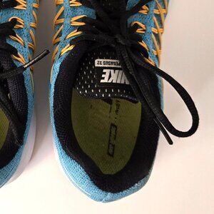 👟A classic and reliable runner! These are authentic Nike Air Zoom Pegasus 32 running shoes, style code 749344-401 (often called the 'Gamma Blue' or 'Blue/Orange/Black' colourway). The Pegasus line is known for its responsive cushioning and versatility, making it a favorite for training and fitness.
