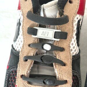 Slip on shoes with permanent rubber "laces" make them easy to put on and take off. Always look neat and tidy too!