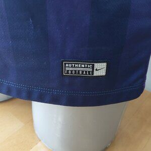 This previously owned soccer jersey is in good used condition and comes directly from Peru. Perfect for the soccer enthusiast. Please note there is a small snag as noted in last photo, but it does not effect look or wear of jersey.