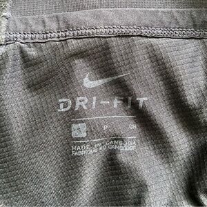 Nike athletic Dri-fit shorts in black. Comes with a double layer, strings for adjustment, and a zip pocket in the back.
