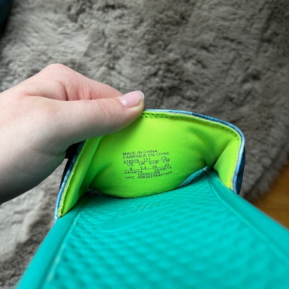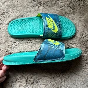 Nike Benassi JDI Tropical Print Slide Sandal Blue Teal Green Size Women's 8