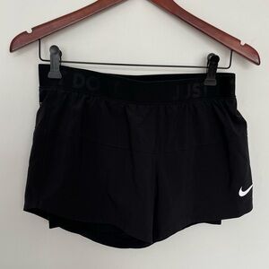 Experience ultimate comfort and flexibility with Nike's black athletic shorts, designed for peak performance during any workout. Crafted from lightweight, breathable materials, these shorts ensure you stay cool and dry. The classic athletic cut provides a full range of motion, making them ideal for all your fitness activities. Size small EUC