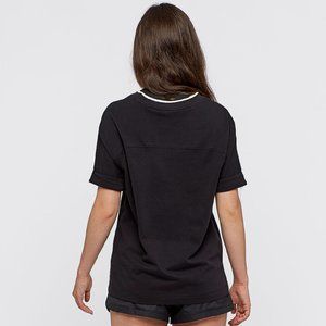 - Signature rib at neckline & rolled sleeves