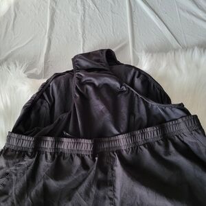 Sleek black running shorts. Features a white Nike logo and stylish trim.