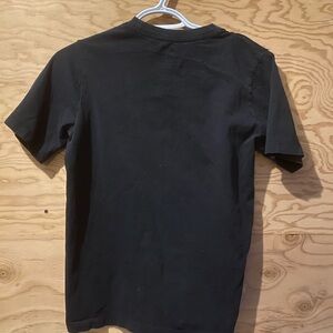 This Nike black short sleeve tee features a striking colorful logo graphic on the front, showcasing a unique melting effect in vibrant shades of red, orange, yellow, and blue. The artistic design stands out beautifully against the black fabric, making it a perfect choice for those looking to add a creative touch to their casual wardrobe. Youth XL