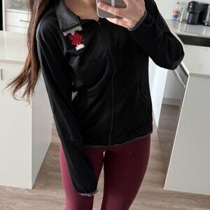 black athletic, zip-up hoodie, university logo, U of T, college merchandise, minimal design, athletic wear, varsity style, black windbreaker, sports jacket