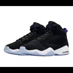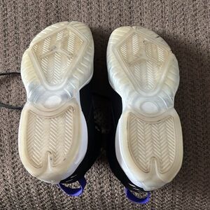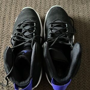 Stylish Nike athletic shoes. Sleek black design with purple accents. Perfect for sports and casual wear. Good condition sized 9