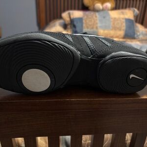 Sleek black design with white Nike swoosh. Perfect for sports and casual wear. Comfortable and stylish. These are a narrow fit.