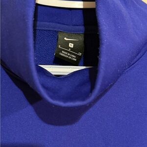 Stylish blue pullover Nike sweatshirt with a high collar. Features a Nike logo on the sleeve. New without tags.