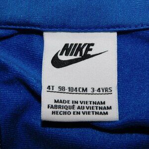 This super cute Boys 4T NIKE Full Zip Track Jacket is in great clean condition. Jacket is 100% Polyester - Machine washable. 2 Front hand pockets. Nike Spellout with swoosh on left front chest.