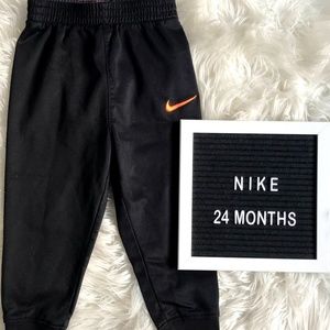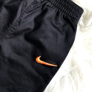 Black Nike boy's track pants with orange swoosh logo. Coming from a smoke-free/ pet-free/ covid-free home. In excellent used condition. No stains, rips or discolouring.
