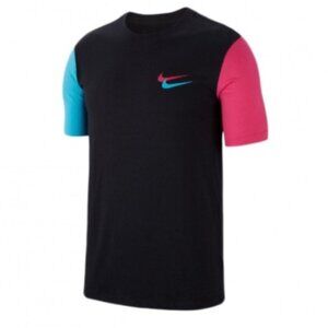 Features: Double Swoosh Graphics on the Front along with the Classic Nike Graphic on the Sleeve - The T-shirt Body is Black and the Sleeves each dawn the colours on the Swoosh. Super Soft / Lived in T-shirt.