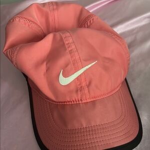 Brighten up your outfit with this stylish Nike cap. Featuring a vibrant coral color, it's perfect for sunny days and outdoor adventures. The iconic Nike logo adds a touch of sporty flair.