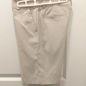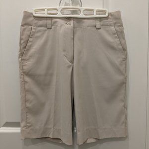 These are great shorts, high quality construction and fabric feels great on. Cream colour. Loved them when they fit me! Still in excellent shape. Hit just above the knee on me at 5'5".