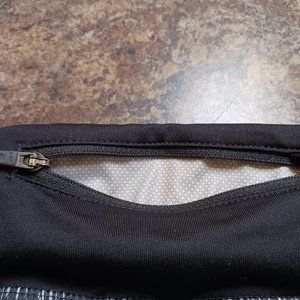 Back waist zipped pocket. Mesh on back of knee for air circulation.
