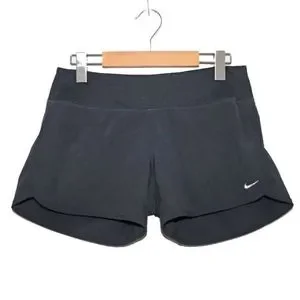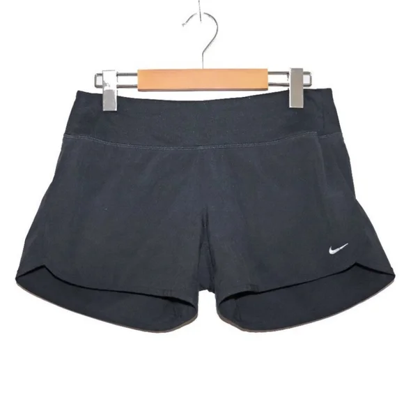 Black Nike Dri-Fit running shorts, with built in underwear and a back zipper pocket for keys. They have a 3.75" rise/inseam. Excellent pre-owned condition!