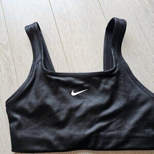 With wide, comfy straps and a squared neckline, the Nike Dri-FIT Swoosh Sports Bra feels snug, secure and cool while you move. The smooth, lightweight design wicks sweat to keep you dry, comfortable and focused. Fabric with a slight shimmer lets your confidence shine.