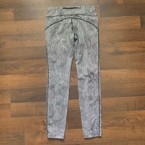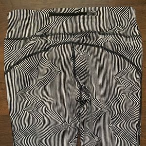 Black and white patterned tights with drawstring inside and small pocket on the back for card or key.
