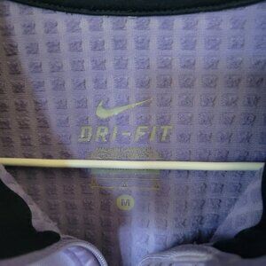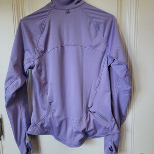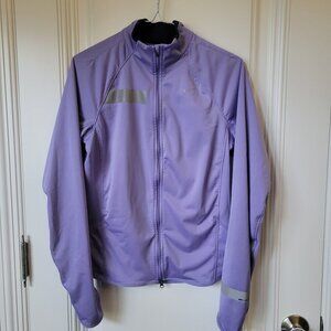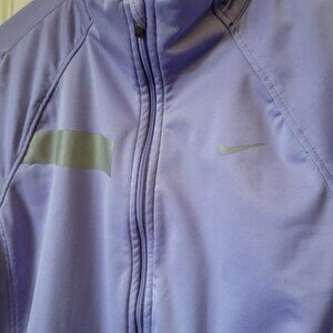 Nike, EUC, Size M, Dri-Fit, Lavender coloured long sleeved, full zip running jacket, with thumbholes at cuffs, small back zip pocket per pics, reflective materials. No visible marks, stains or tears. P to P 17 1/2" + stretch L 23", Sleeves 21" from underarm