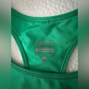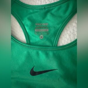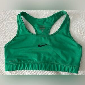 Women’s Nike Dri-Fit Sports Bra - Size Medium (previously owned) Looks to be in good condition. Review photos closely for visual of item’s condition. This model sports bra does not have any additional padding (built-in or removable) Fabric has a smooth, soft feel for a sports bra. 88% Polyester 12% Spandex.