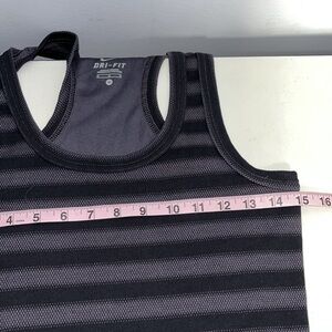 Nike Dri-Fit Tank Top. Excellent used condition. Black and grey stripe. Fitted. Cotton/poly blend. See photos for measurements.