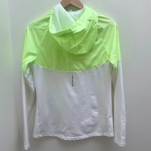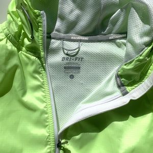 This wind breaker jacket features a polyester top to protect against elements while on the move.